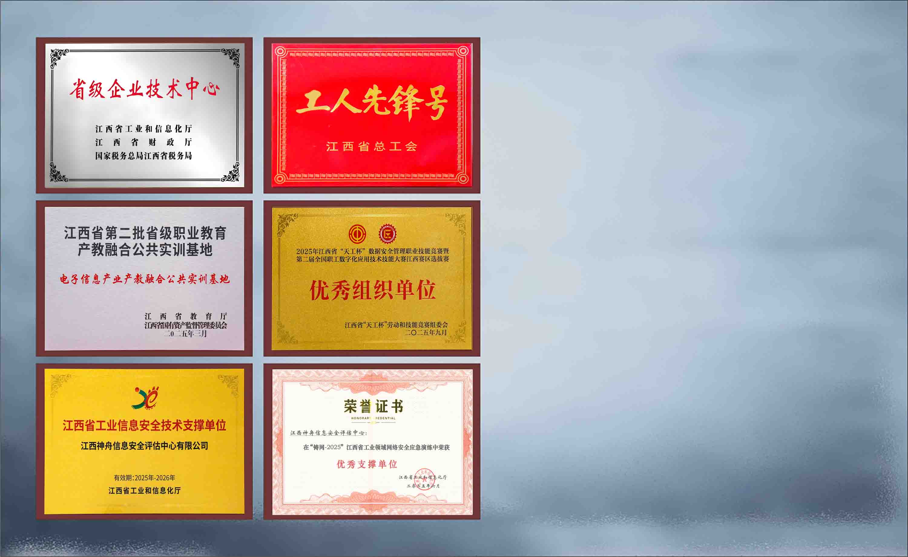 江西神舟于2006年成为江西省唯一参与全国等级保护试点的单位,获全国首批《网络安全等级测评与检测评估机构服务认证》和《CNAS检验机构认可证书》资质,2017-2020年连续4年被国家等保办评为“全国等级测评机构先进单位”,2024年获批《商用密码检测机构资质证书》,现有职工260余人,其中江西省“双千计划”领军人才1人,省、市五一劳动奖章2人,省技术能手4人。