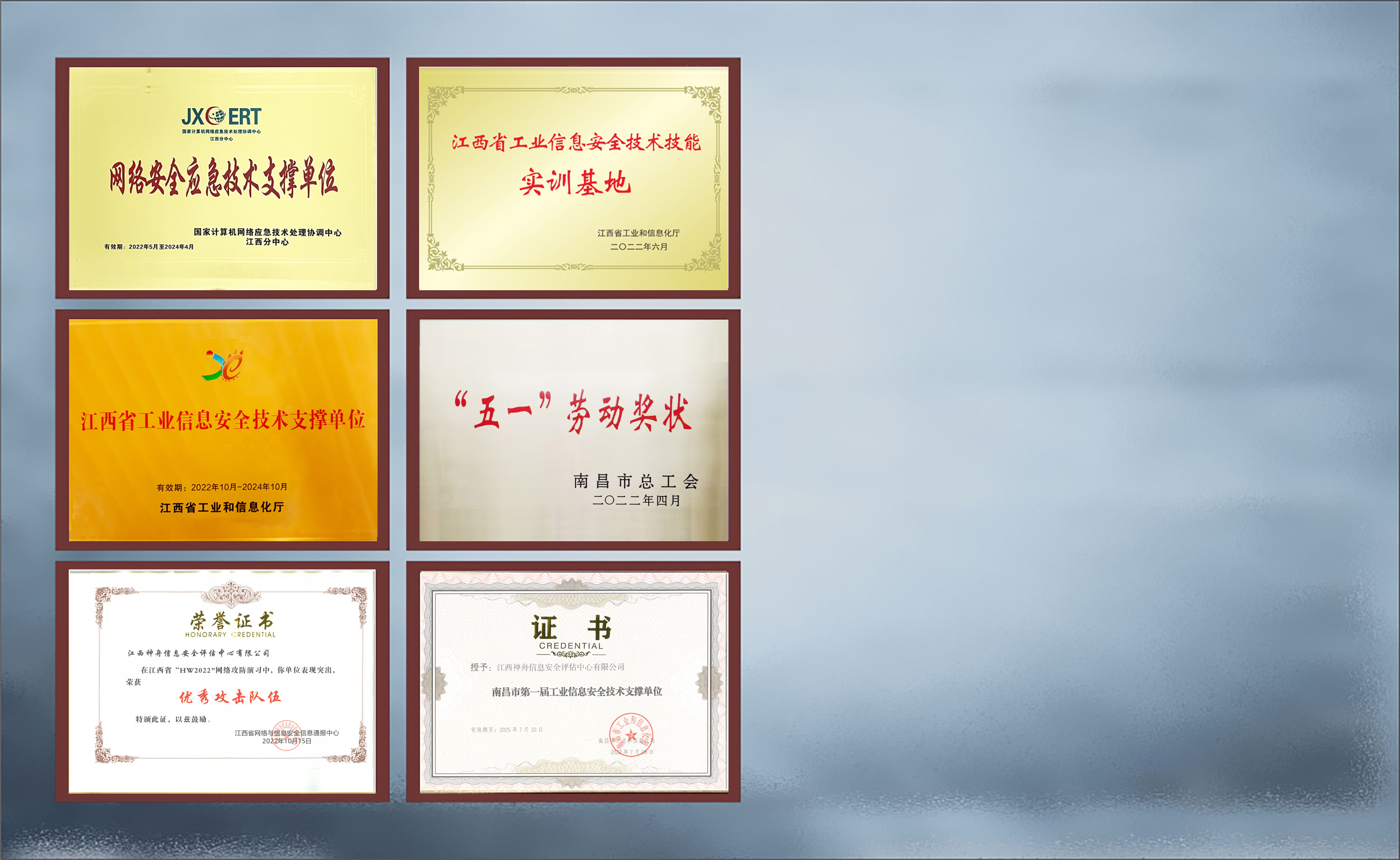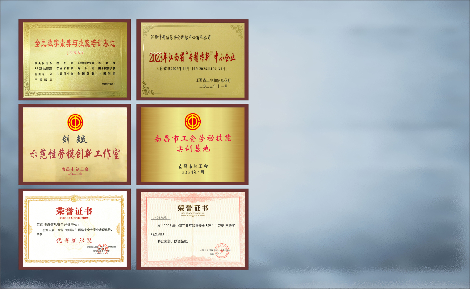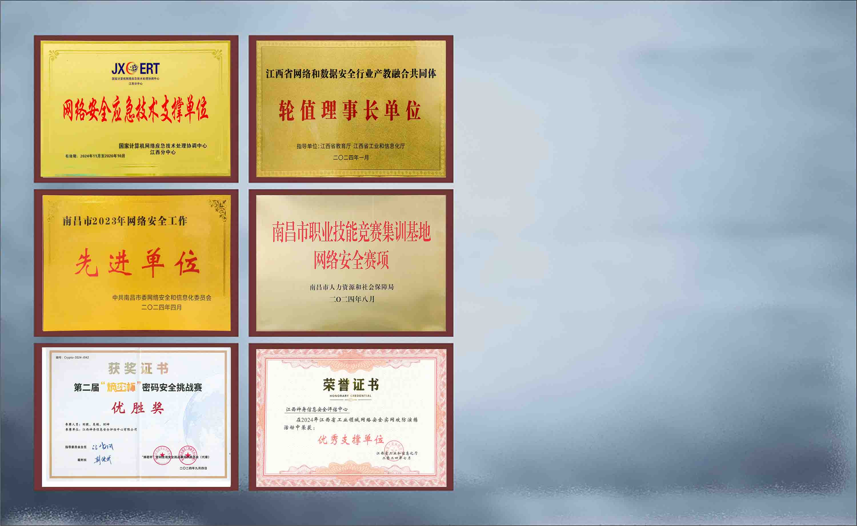 江西神舟于2006年成为江西省唯一参与全国等级保护试点的单位,获全国首批《网络安全等级测评与检测评估机构服务认证》和《CNAS检验机构认可证书》资质,2017-2020年连续4年被国家等保办评为“全国等级测评机构先进单位”,2024年获批《商用密码检测机构资质证书》,现有职工260余人,其中江西省“双千计划”领军人才1人,省、市五一劳动奖章2人,省技术能手4人。