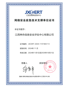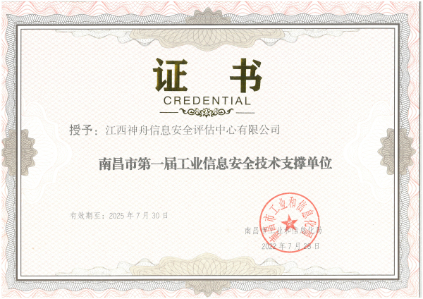 江西神舟信息安全评估中心成立于1993年7月1日,中央网信办等部门授牌“全民数字素养与技能培训基地”。国家高新技术企业、江西省“专精特新”企业、省产教融合型企业、省级企业技术中心,业务涵盖网络安全等级保护、商用密码应用性评估、重保与威胁情报、网络安全技术服务、网络攻防演习、数字人才培育、科技创新与研发七大服务体系,并创办神舟学院获批职业技能等级认定社会评价组织。2021-2024年,江西省委书记尹弘,省委常委李红军、任珠峰等领导率队调研江西神舟和科研成果,并给予了充分肯定。